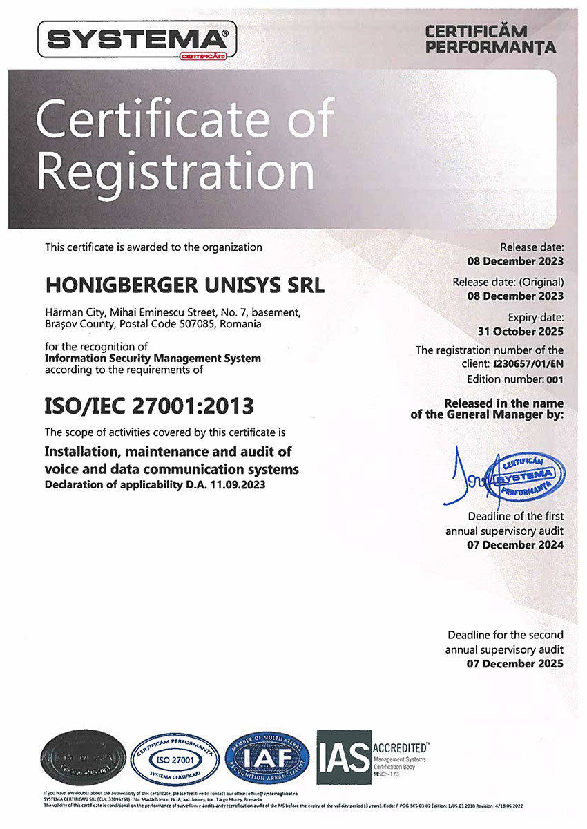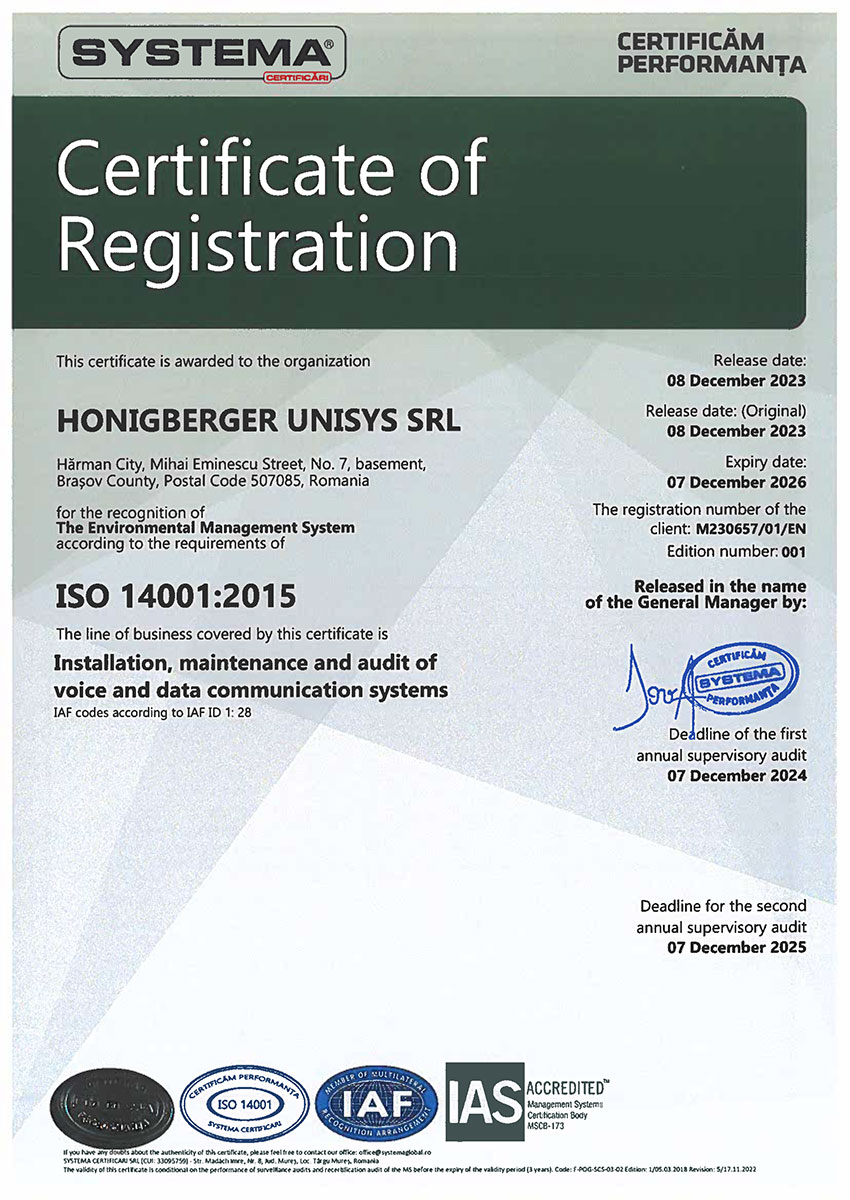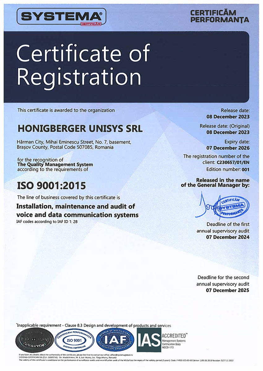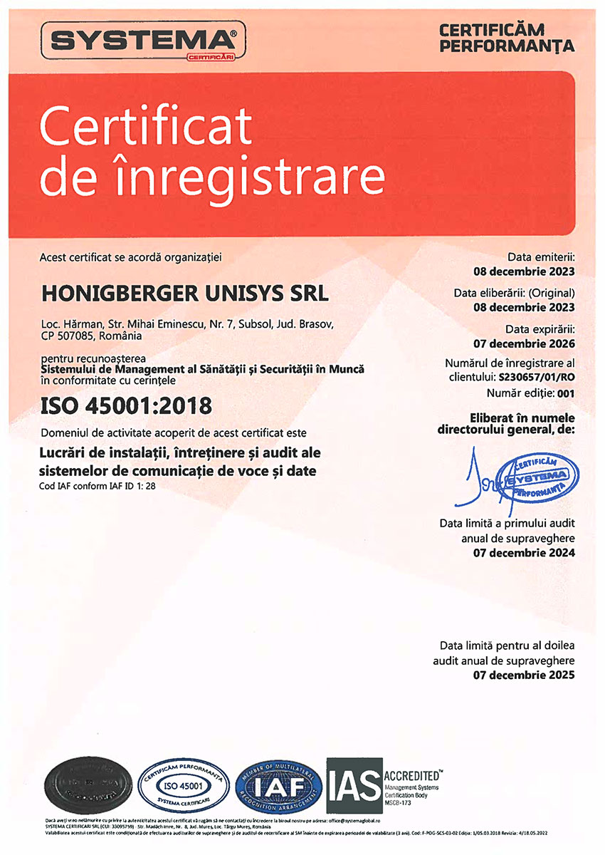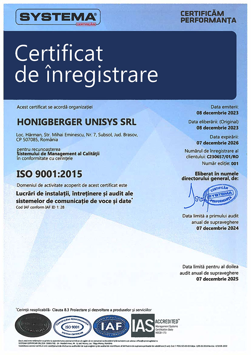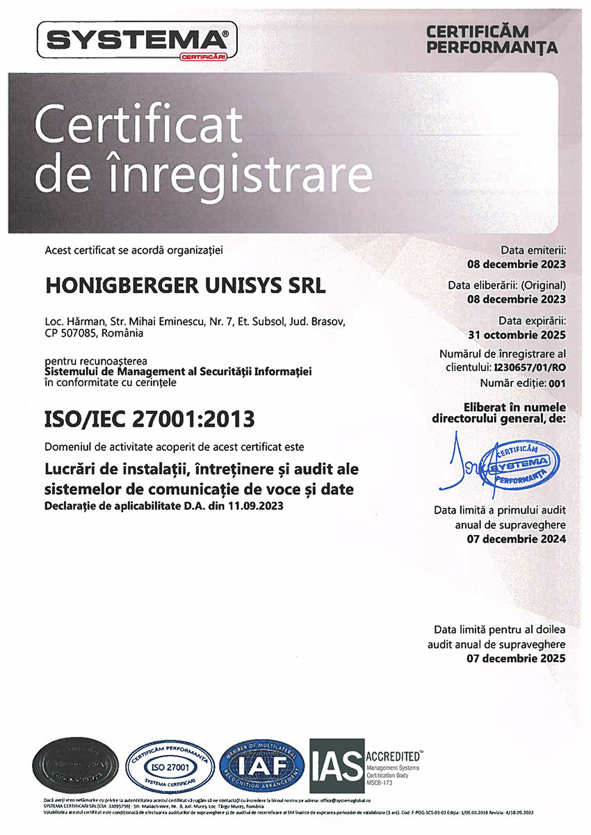 Honigberger Unisys – Rețele, audit rețele, centre de date